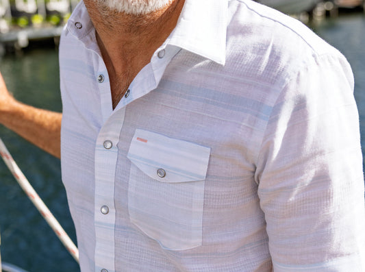Criquet Hemp Stripe Pearl Snap - Light Blue