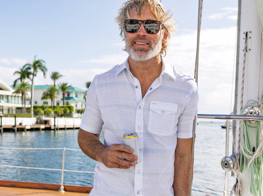 Criquet Short Sleeve Performance Pearl Snap Seersucker - Navy
