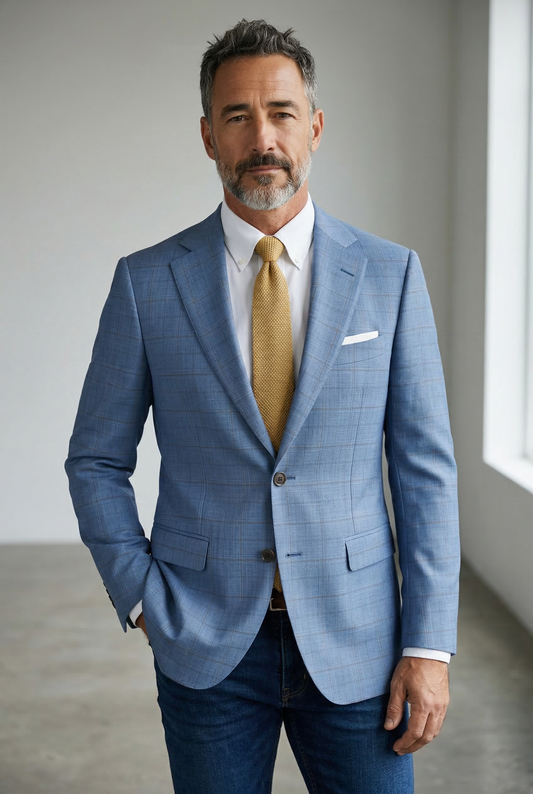 Sport Coat | Windowpane Check | Sky Blue | Giles & Jasper Collection