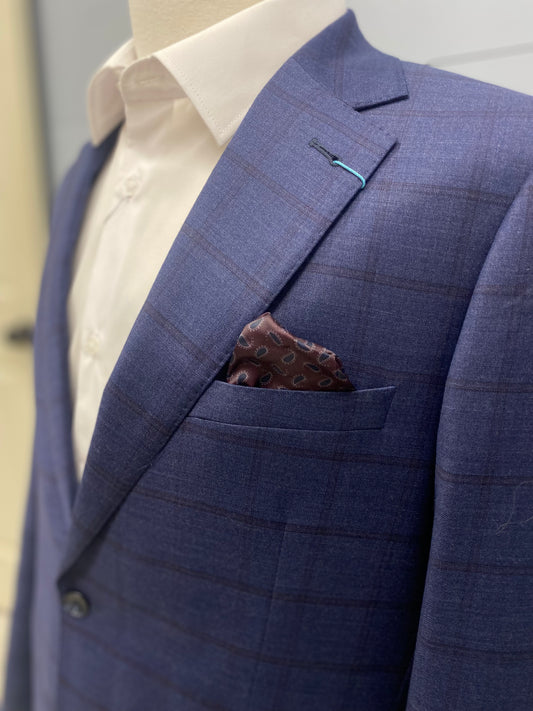 Giles & Jasper Modern Suit Coat - Navy Burgundy Windowpane