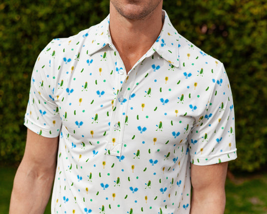 Criquet Performance Sport Range Polo - White Pickleballer Print