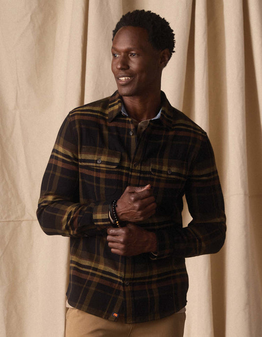 The Normal Brand Mountain Overshirt in Black Plaid