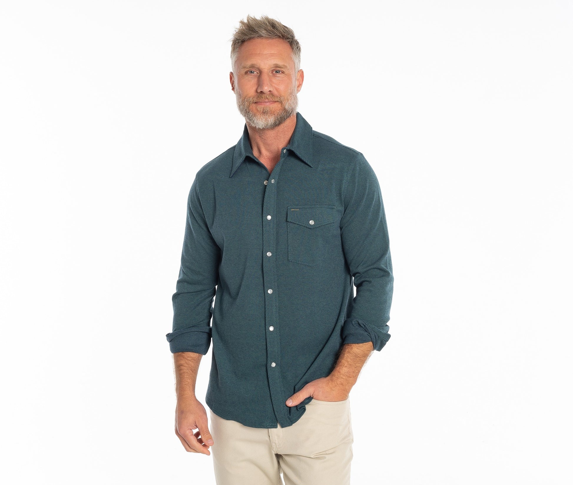 Another fine addition to the Pearl Snap Collection. Effortless, laidback style with the perfect amount of stretch to maximize comfort in every stitch. This thing might actually be the most comfortable pearl snap we have. It’s seriously like wearing a blanket straight out of the dryer, but much more practical… and stylish.