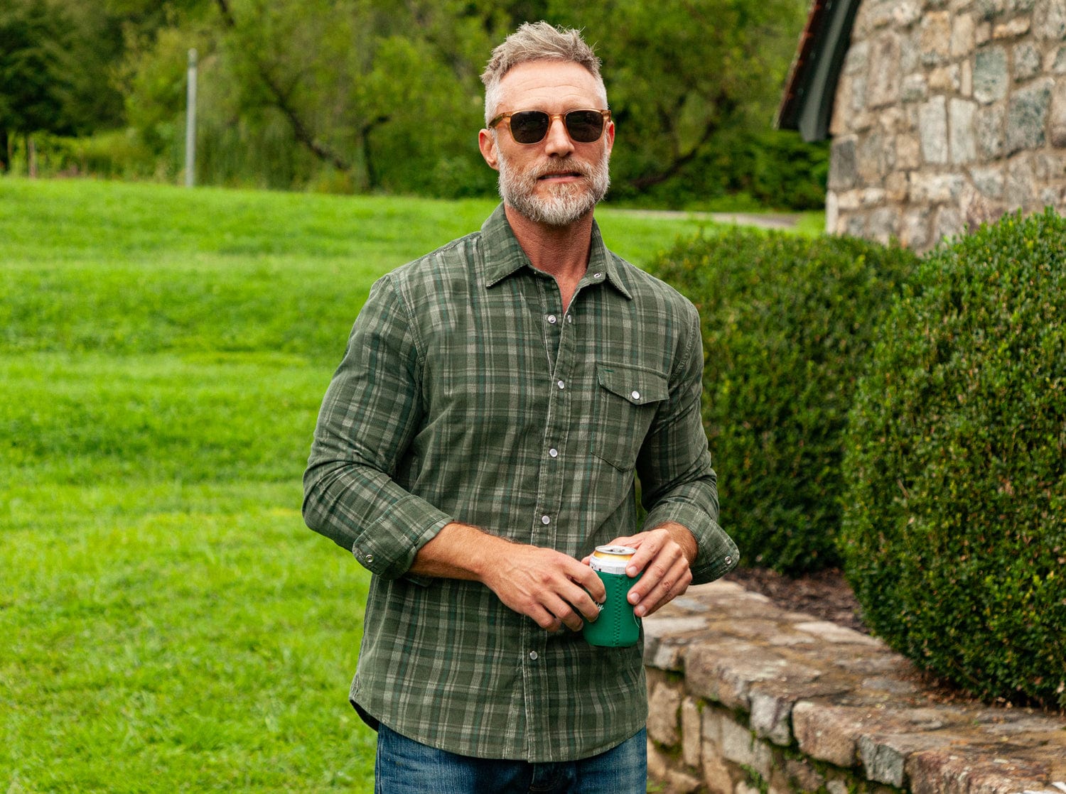 Criquet Corduroy Pearl Snap - Olive Plaid