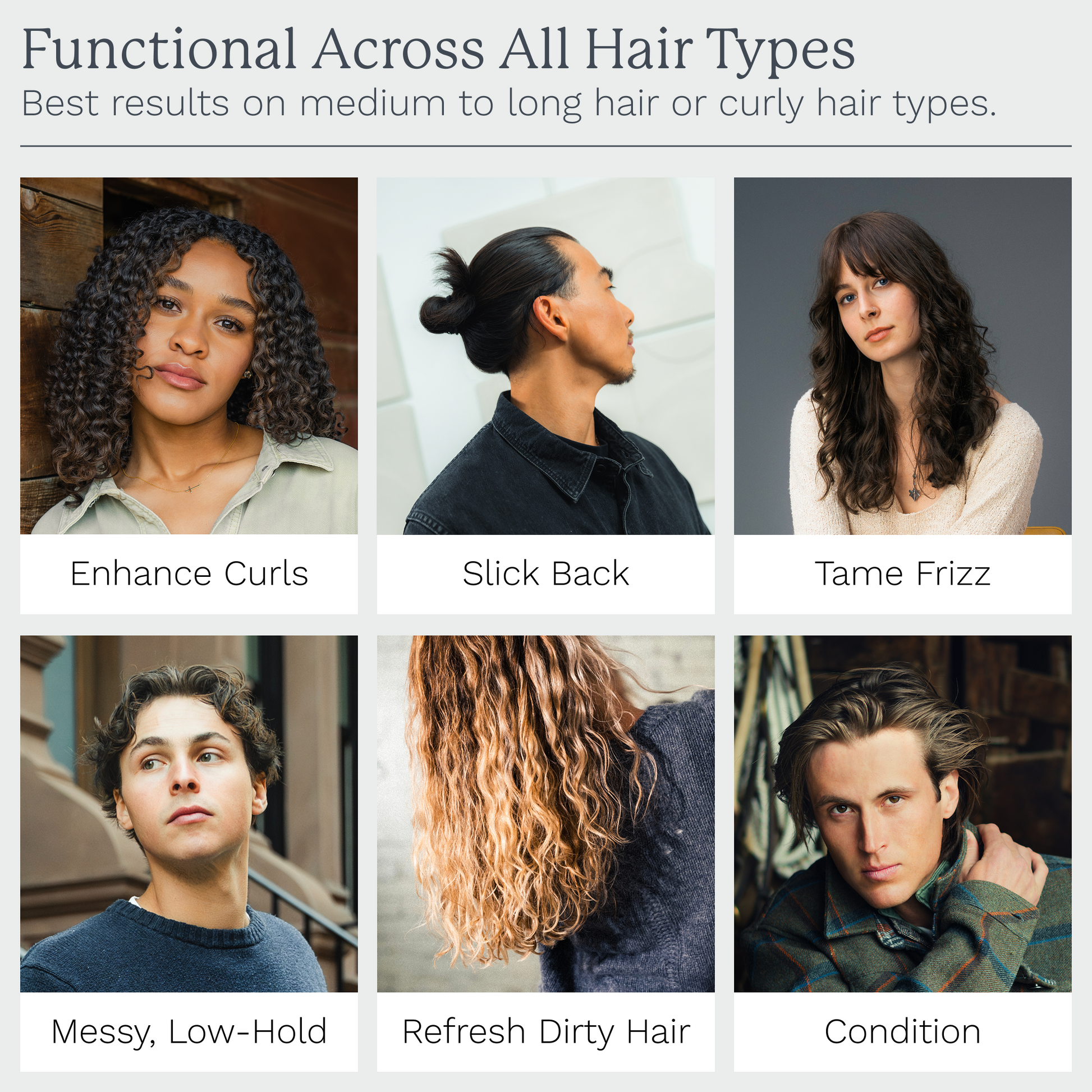 Designed for all hair types, textures, men, women and whoever! Best suited for medium-long hair or those after a 'loose, natural look'.