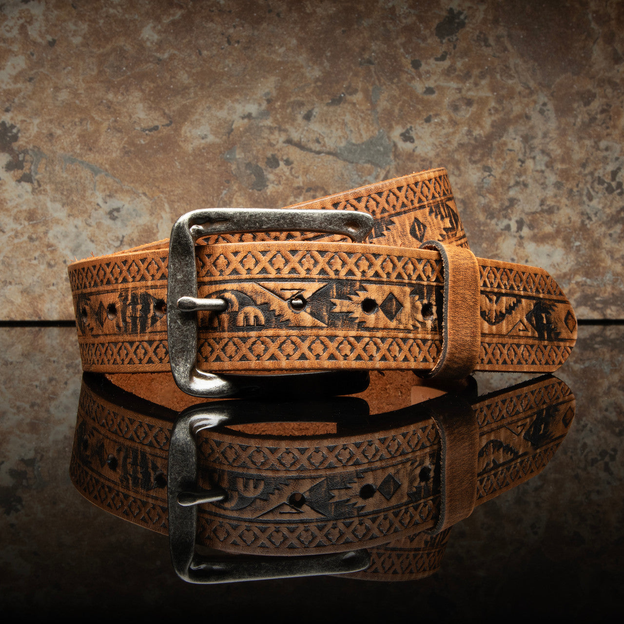The 'Freedom Wild One' is soft to the touch and, worn in like an old favorite, the leather will continue to acquire character over the years. The light-toned debossed belt with darken and patina with age as the oils come to the surface.