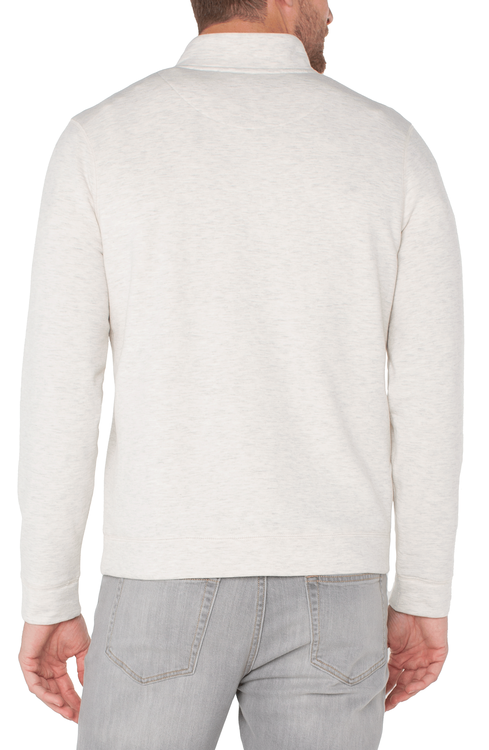 Liverpool Los Angeles Mock Neck Button Placket Pullover - Ivory/Grey