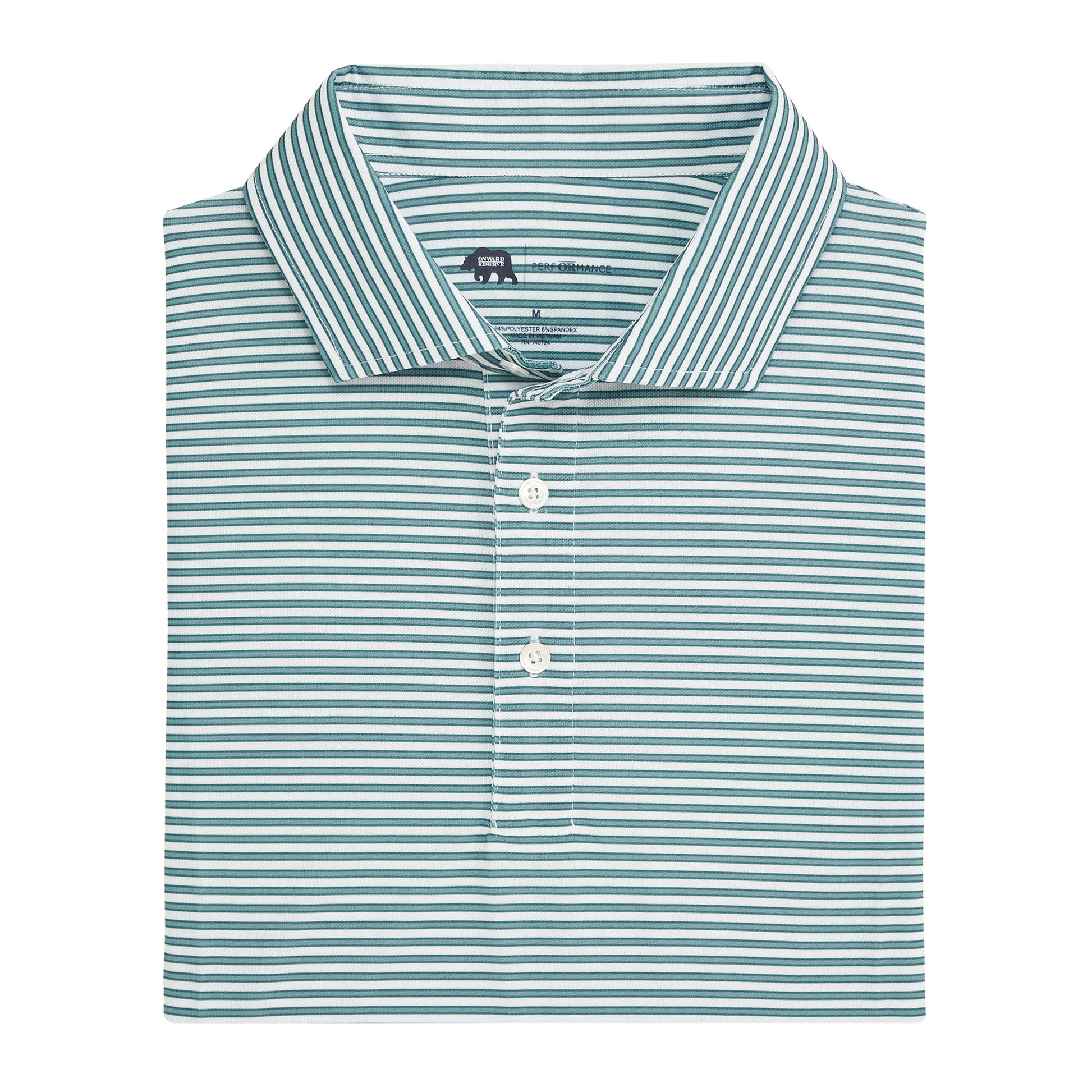 Onward Reserve Guide Stripe Performance Pique Polo- Mallard Green